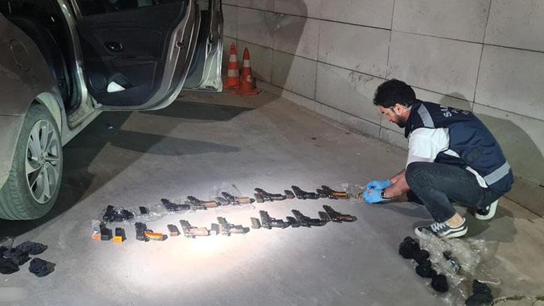 Teknik ve fiziki takibin akabinde operasyon için düğmeye basıldı. Şüphelilere ilişkin araçta ve ikametlerde yapılan aramalarda, araçta özel olarak hazırlanmış saklı bölmelerde 17 ruhsatsız tabanca, 5 bin 670 tabanca mermisi, 59 şarjör ve kadro halinde horoz ve iğne tertibatı ele geçirildi.