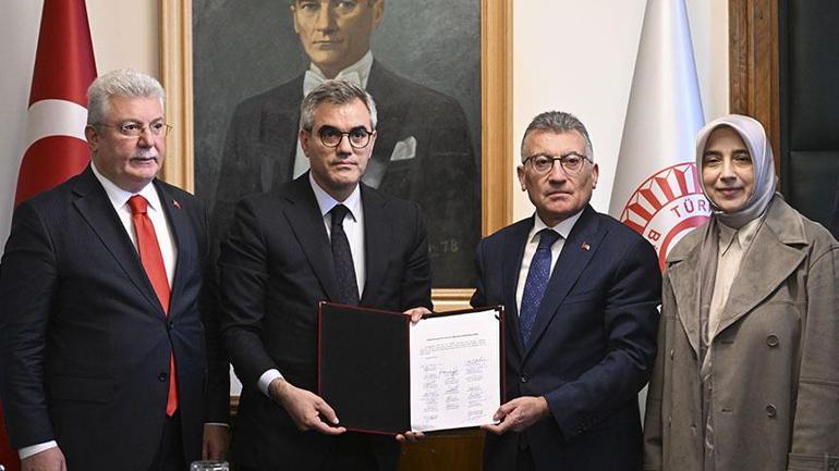 AK Parti Küme Lideri Abdullah Güler, 28. Yasama Periyodu İkinci Devre Meclis Başkanlığı seçimi için Kurtulmuş’un aday gösterilmesine ait dilekçeyi TBMM Genel Sekreteri Talip Uzun’a teslim etti.