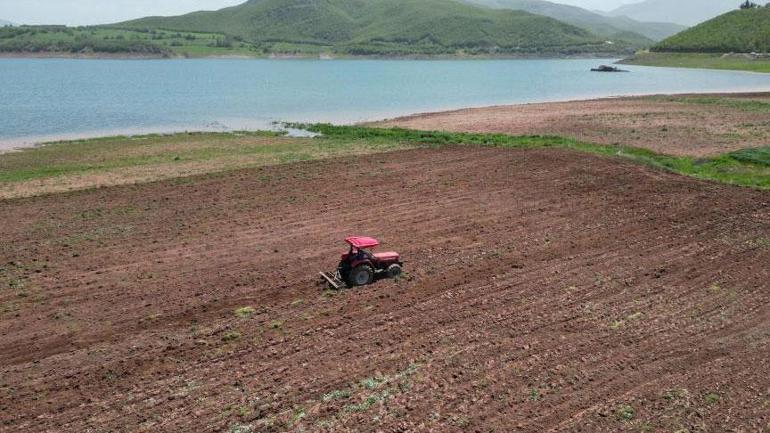 Baraj suları çekildi, gün yüzüne çıktı! Traktörünü alan oraya koştu