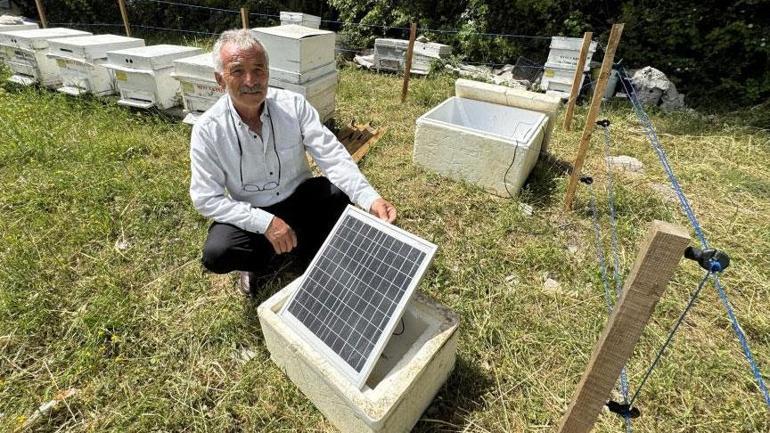 Bu yıl yine arılı kovan aldığını ve yine çoğaltmaya çalıştığını anlatan Ulu, “Bu yaptığımız sistemde, güneş güç panelli elektrikli çite ayılar dokununca bir daha gelmiyor. Güneş güç paneli 12 volt elektrik üretip aküyü dolduruyor ve tele giden elektriği yükseltici ile 12 volta çıkarıyor. Ayılar tele değdiği vakit çarpılıyor. Bu öldürücü değil, yalnızca caydırıcı. Ayılar bundan etkilenip bir daha gelmiyor. Esasen bu yaptığımız sisteme 12 volta kadar devletimiz müsaade veriyor” dedi.