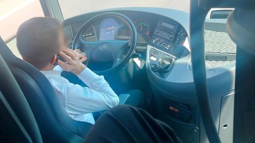 Mersin’den Tokat’a giden bir yolcu otobüsünde gerçekleştirilen kontrol esnasında, seyir halindeyken cep telefonu ile konuşan otobüs sürücüsünün üç başka trafik kuralını ihlal ettiği tespit edildi. İmajlara de telefon konuşma anları yansıtan şoföre toplam 5 bin 327 TL ceza kesildi.