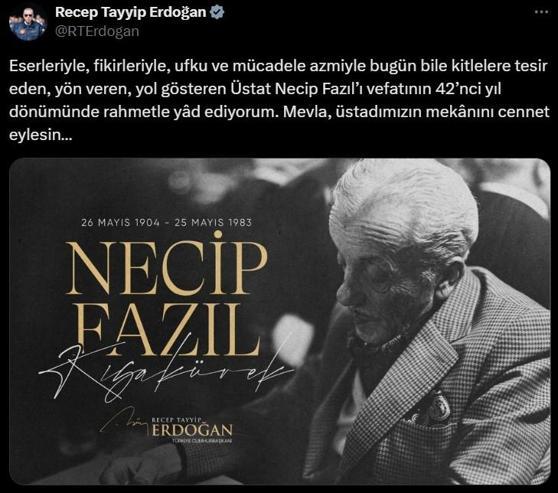 3. Cumhurbaşkanı Erdoğan’dan Necip Fazıl Kısakürek bildirisi