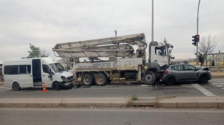 Diyarbakır’da cip, beton pompa aracı ve emekçi servisi minibüsünün karıştığı zincirleme kazada 11 kişi yaralandı.