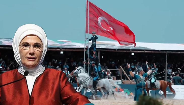 Daha sonra şova ait toplumsal medya hesabından paylaşımda bulunan Emine Erdoğan, “7’nci Etnospor Kültür Şenliği’nde gönüllere işleyen Karabağ Atları’nın eşsiz gösterisi… Bir milletin kültürü, başkasının yüreğinde yankı buldu bugün. İki devlet, bir millet; kültürde, yürekte ve gelecekte sürekli bir bütün.” tabirini kullandı.
