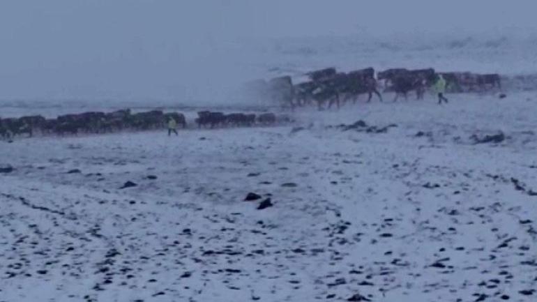 Ardahan’ın Damal ilçesine bağlı Seyitören köyünde bir anda bastıran kar yağışı meralarda hayvanlarını otlatan çobanlara sıkıntı anlar yaşattı. Yağan karla birlikte çobanlar büyükbaş hayvan sürüsünü köye indirmek zorunda kaldı.