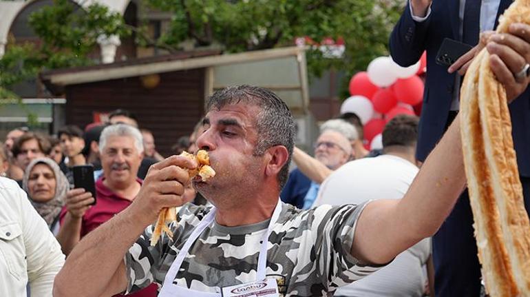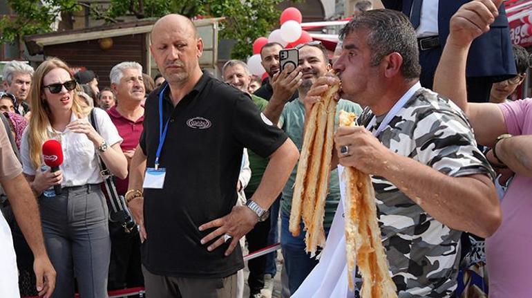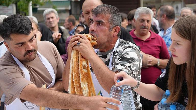 Zaman vakit baygınlık düzeyine gelen yarışmacılar başlarından aşağı su döküp börek yemeğe devam etti. Renkli imajlara sahne olan börek yeme yarışında birinci ikinci ve üçüncü olan yarışmacılar tıpkı uzunlukta 11’er metre börek yiyince devreye hassas terazi girdi.