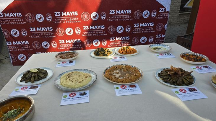 Kentte coğrafik işaretli tescilli eser sayısı Hatay Valiliği’nin yaptığı çalışmalarla 10 yeni eserin daha eklenmesi ile 50’ye yükseldi. Hatay’ın yöresel lezzetleri aşur yemeği, bakla ezmesi, peynirli irmik helvası, taş kadayıf, tuzlu yoğurt çorbası, yaprak sarması, ekşi aşı, bahtenis dolması, fellah köftesi ve pirzolalı yaprak sarma coğrafik işaret tescil evrakı aldı. Antakya Gastronomi Çarşısı’nda düzenlenen tanıtım aktifliğine Vali Mustafa Masatlı, Büyükşehir Belediye Başkanı Mehmet Öntürk ve protokol üyeleri katıldı.