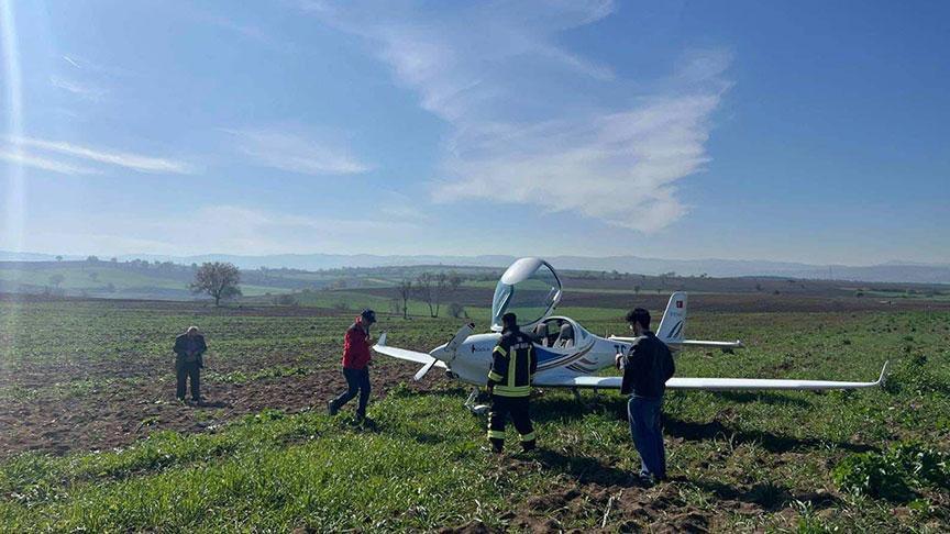 Havada panik! Eğitim uçağı tarlaya mecburî iniş yaptı