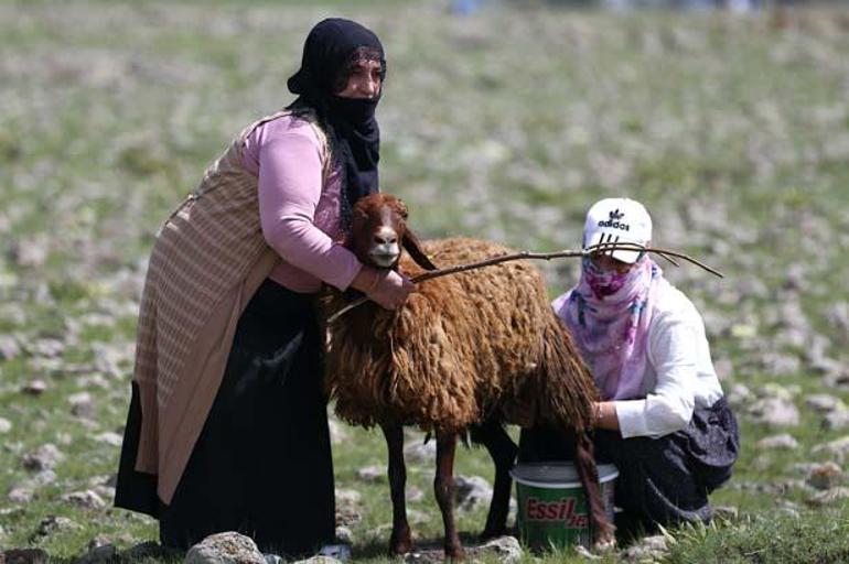 Mahalle statüsündeki köylerinin meralarında iki yıldır hayvanlarını otlatan anne ile kızı, elde ettikleri süt eserleriyle hem üretime hem de aile iktisadına katkıda bulunuyor.