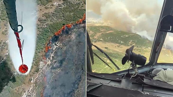 Alevler yakındaki makilik alana da sıçradı. İhbar üzerine bölgeye İzmir Orman Bölge Müdürlüğü’ne ilişkin 2 uçak, 5 helikopter, 20 arazöz, 5 su ikmal aracı ve 1 dozer sevk edildi.