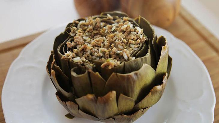 Enginarları temizleyip limonlu suda bekletin. Kinoa yahut bulguru haşlayın. Soğan ve yeşilliklerle karıştırıp iç harcı hazırlayın. Enginarların içini bu harçla doldurun. Üzerine zeytinyağı ve limon gezdirerek az ölçüde suyla tencerede kısık ateşte pişirin. Dursun, “Bitkisel protein içeren kinoa ile yapılan bu dolma, bilhassa vejetaryenler için de eksiksiz bir tercih” diyor.