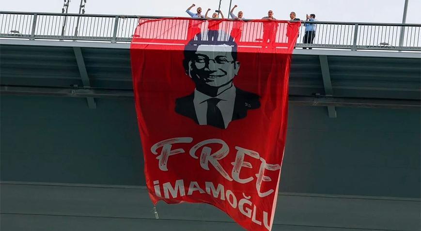 CHP Genel Lider Yardımcısı Özçağdaş, Şanlıurfa Milletvekili Mahmut Tanal, İstanbul Milletvekilleri Nimet Özdemir ve Ali Gökçek, Tekirdağ Milletvekili İlhami Özcan Aygun ile Edirne Milletvekili Ahmet Baran Yazgan, akşam saatlerinde, tutuklanarak İstanbul Büyükşehir Belediye Başkanlığı misyonundan uzaklaştırılan Ekrem İmamoğlu’nun silüeti bulunan “Free İmamoğlu” yazılı pankartı köprüye astı.