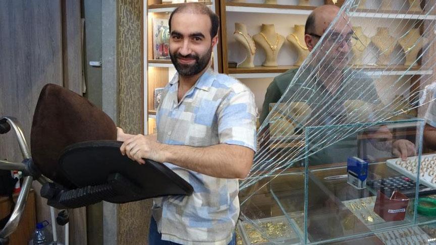 Soyguncuya sandalye fırlatan Muhammed Fevzi, “Bir şey alıp atmak istedim. Bu sandalyeyi alıp fırlattım. Soyguncu da o vakit çabucak kaçtı” biçiminde konuştu.