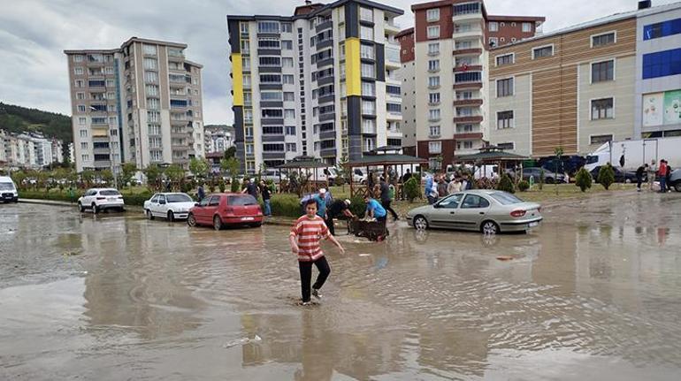 SİNOP (AA) – Sinop’un Boyabat ilçesinde tesirli olan sağanak nedeniyle birtakım konut ve iş yerlerini su basarken, araçlar trafikte ilerlemekte zahmet çekti.