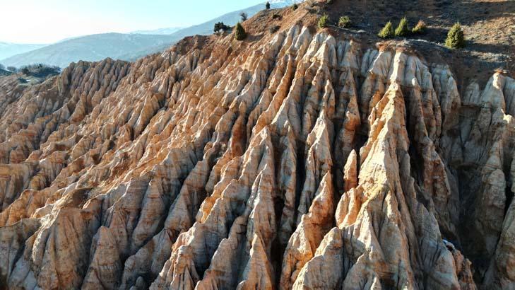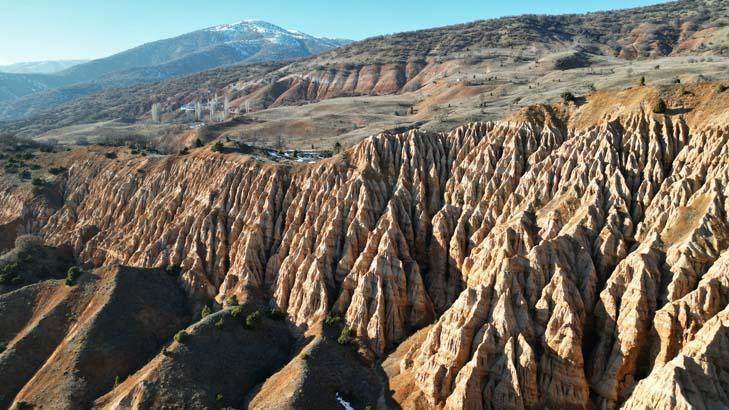 Sivas Cumhuriyet Üniversitesi (SCÜ) Eğitim Fakültesi Coğrafya Eğitimi Anabilim Kolu Öğretim Üyesi Dr. Fatih Kartal, Divriği ilçesinin farklı coğrafik yapısı olduğunu belirterek, “İç Anadolu Bölgesi, her ne kadar düzlükleriyle isimlendirilse da Sivas ilimiz ortalama yükseltisi İç Anadolu Bölgesi’nden fazla olan bir vilayetimizdir. Divriği ilçesi ise büsbütün Doğu Anadolu Bölgesi’nin hissedildiği çetin ve yüksek bir coğrafyaya sahip bir ilçemizdir. Buradaki birçok oluşumlar kendi içerisinde vadi sistemlerini de meydana getirmiş. Şeytan Kenti Kayalıkları da Divriği’de önemsenen ve önemli boyutta doğal hoşluğu olan, turizm cazipliği çok yüksek olan yerlerden bir adedidir. Bunun oluşumunu incelediğimiz vakit, yatay yapının faylanma sonucunda sıkıştırılmasıyla, yağışla ve akarsularla birlikte kısmi olarak bir kırgıbayır sistemi oluşturduğunu görüyoruz. Divriği’de de önemli bir kırgıbayır sıklığı var. Bu kırgıbayır biçiminin oluşumu da külliyen halk tarafından Şeytan Kenti Kayalıkları profiline dönüştürülmüş. Burada büsbütün kayaçların aşındırma profilleri ortaya çıkmıştır. Bu çeşit alanların oluşumu bilhassa ‘Şeytan Kenti Kayalıkları’nın oluşumunun miyosen periyoduna ilişkin olduğunu görüyoruz. Bu periyottaki oluşumlar kendisini hala önemli boyutta yenileyebiliyor” dedi.