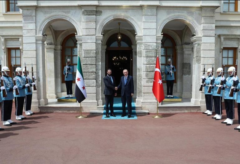 Cumhurbaşkanı Recep Tayyip Erdoğan, Suriye Cumhurbaşkanı Ahmed Şara ile bir ortaya geldi. Cumhurbaşkanı Erdoğan, Suriye Cumhurbaşkanı Şara’yı Dolmabahçe Çalışma Ofisi’nde resmi törenle karşıladı.