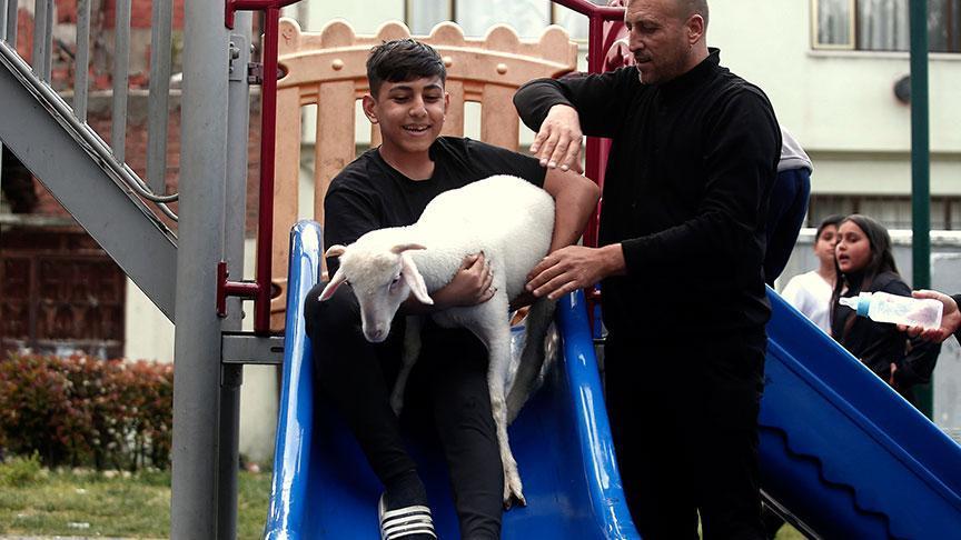 3 aylık olan Maviş, ailesiyle bir arada parka gidip çocuklarla oynuyor. Öteki çocuklarla kovalamaca oyunu oynayan Maviş, yorulunca anne Yazgı Benlioğlu’nun yanına giderek sütünü de içmeyi ihmal etmiyor. Ağabeyi ile birlikte kaydıraktan kayan Maviş, uykusu gelince ailesinin yanına gidip bekliyor. Mustafa Benlioğlu, “Geçen yıl da bu formda kuzu besledik. Büyüyünce kesmeye kıyamadık ve memlekete yolladık. Yeniden heveslendik ve Maviş’i aldık. Aldığımızda 3 günlüktü. Konuta getirdiğimizde, ‘bu hayvan yaşamaz’ dediler. Bize geldiğinde daha göbeği bile düşmemişti. Biz evlatlarımıza baktığımız üzere baktık, hiçbir şeyi esirgemedik. Sonradan Maviş kendini toparladı. Gün geçtikçe bize alıştı. Bizle yatıp, bizle kalkıyor. Ben işe gittiğim için genelde eşim ilgileniyor. Her gün sütümü ve yemini veriyor. 4 evladım nasılsa Maviş de benim için o denli. Yeri geldi biz kendimizle ilgilenmedik, Maviş ile ilgilendik. Birinci konuta aldığımda her gece denetim ediyorduk sanki yaşıyor mu diye. Önümüz Kurban Bayramı, geçen yıl da büyüttüm bir tane. Allah ömür verdiği sürece Maviş bizimle birlikte olacak. Birinci aldığımızda altını bezliyorduk. Artık kendisi de alıştı, tuvaleti gelince kapının önüne geliyor. Biz de durumu anlayarak dışarı çıkarıyoruz. Dışarıda ise ben bir anda kaybolursam şayet kendi kendine meskene dönüyor. Mahallenin de maskotu olmuş durumda. Kahvehaneye gidince, ben çay içiyorum o da süt içiyor” diye konuştu.